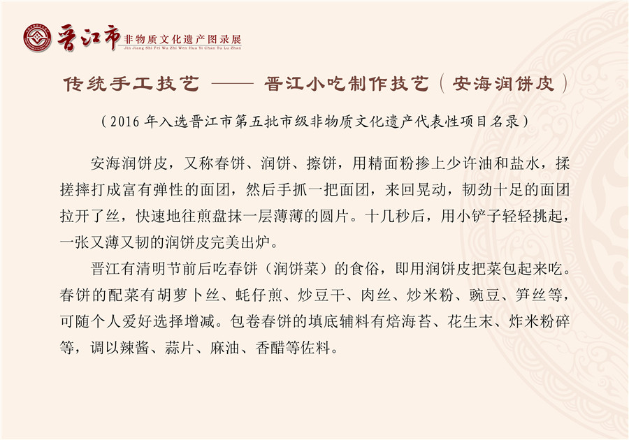 【晋江市级】传统手工技艺——晋江小吃制作技艺(安海润饼皮)