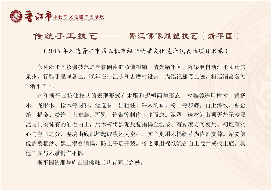 【晋江市级】传统手工技艺——晋江佛像雕塑技艺(浙平国)