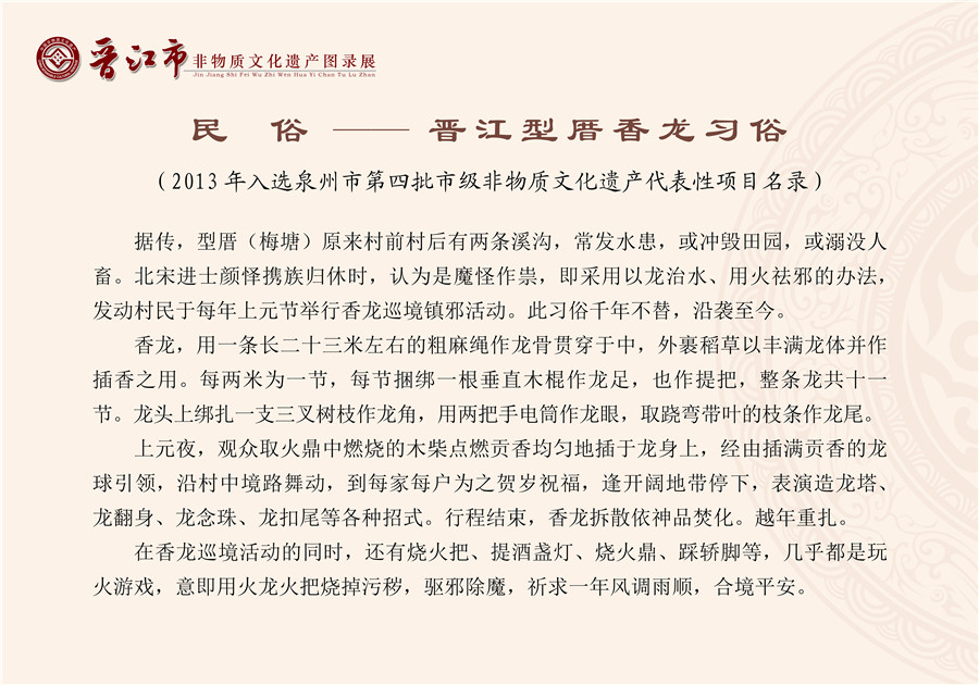 【泉州市级】民俗——晋江型厝香龙习俗