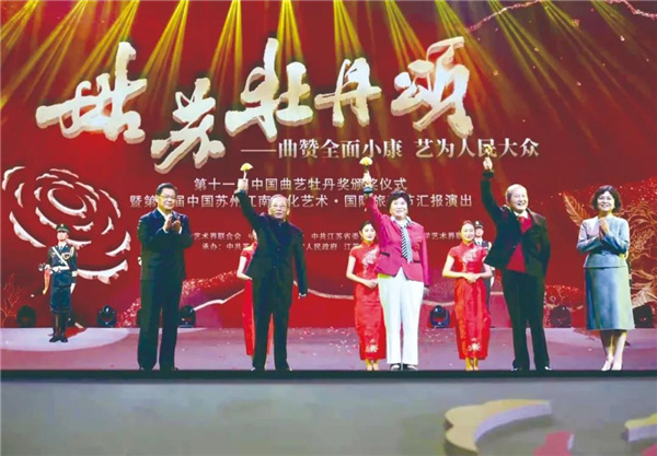 2020年10月15日晚,中国曲艺最高奖——第11届牡丹奖颁奖仪式在苏州市举行,南音表演艺术家、理论家苏统谋获“中国文联终身成就曲艺艺术家”荣誉称号,成为福建省首位获此殊荣的艺术家,填补了我省文艺事业该奖项的空白。中国文联主席、中国作协主席铁凝等为他及同时获奖的评书表演艺术家刘兰芳、苏州评弹表演艺术家邢晏春颁奖。颁奖仪式上,给予他的致敬辞是:“向苏统谋致敬!一方南音享誉世界,有你的传承,有你的杜鹃啼血,世界非遗名录记得你的执着。”