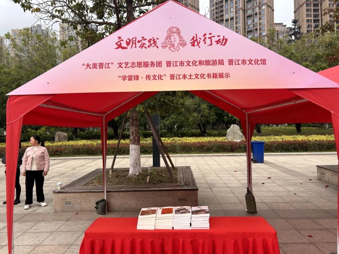 3月5日,晋江市“学雷锋•文明实践我行动”主题活动启动仪式在池店镇桥南公园举办,“大美晋江”文艺志愿服务团在志愿市集上进行“学雷锋·传文化”晋江本土文化书籍展示。晋江市文化馆群众文化志愿服务队现场赠阅《星光》,宣传本土文化。同时,发放文明旅游宣传手册、晋江旅游宣传手册等,吸引大量市民群众驻足领取。