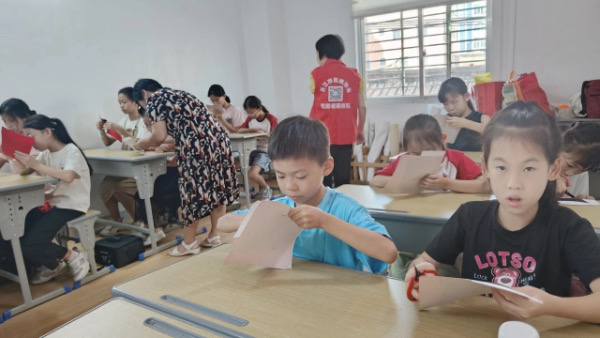 8月8日,晋江市文化馆承办非遗进“党建+”邻里中心活动。在赖厝社区“党建+”邻里中心(赖厝文化中心),以廉洁文化为主题的剪纸活动有序开展。课堂上,老师首先向孩子们简单阐述了剪纸的文化、分类与工序、造型手段、构图等多方面的知识,使孩子们了解剪纸的艺术特色。随后一边进行示范,一边为孩子们讲解剪纸步骤、剪纸技巧,一边手把手教学。
