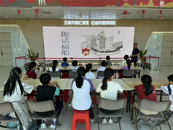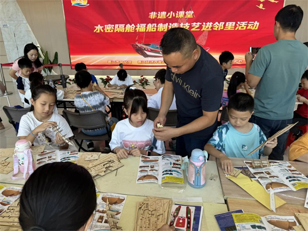 活动伊始,陈老师先讲解了福船的历史起源、船体构造和制作方式,让孩子们对“水密隔舱福船制造技艺”有初步的认识。“制作小小福船,需环环相扣,紧密结合,才能使福船固定成型。”在陈老师的引导下,孩子们一边分析图纸一边组装,经过不懈努力,一艘艘福船傲立于孩子们的手中。