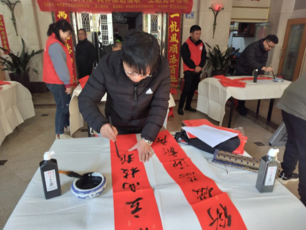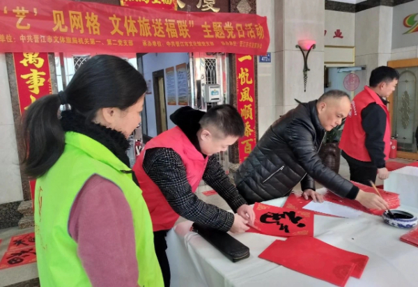 岁序更迭,辞旧迎新。为深入开展“文化进万家”活动,传承弘扬中华民族优秀传统文化,营造欢乐喜庆、文明和谐的春节节日氛围,结合机关企事业单位党组织和党员到村(社区)“双报到”工作以及住宅小区管理品质提升专项行动要求,1月10日,由中共晋江市文体旅局机关第一、第二党支部主办,中共晋江市文化馆党支部承办,晋江市书法家协会协的“‘艺’见网格 文体旅送福联”活动,在青阳街道青华社区得添大厦举办。现场喜庆热闹,活动圆满结束,为社区居民送上一份温馨的新年贺礼。
