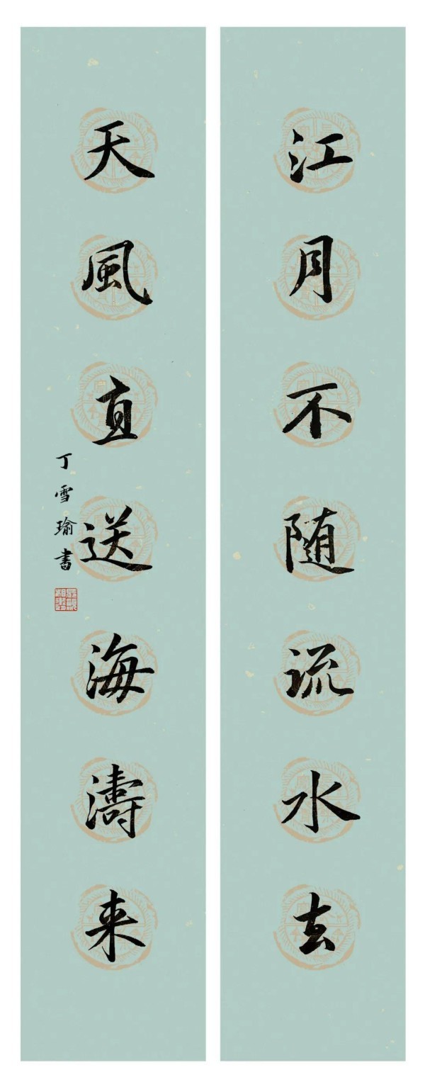丁雪瑜《行书对联》74x16cmx2