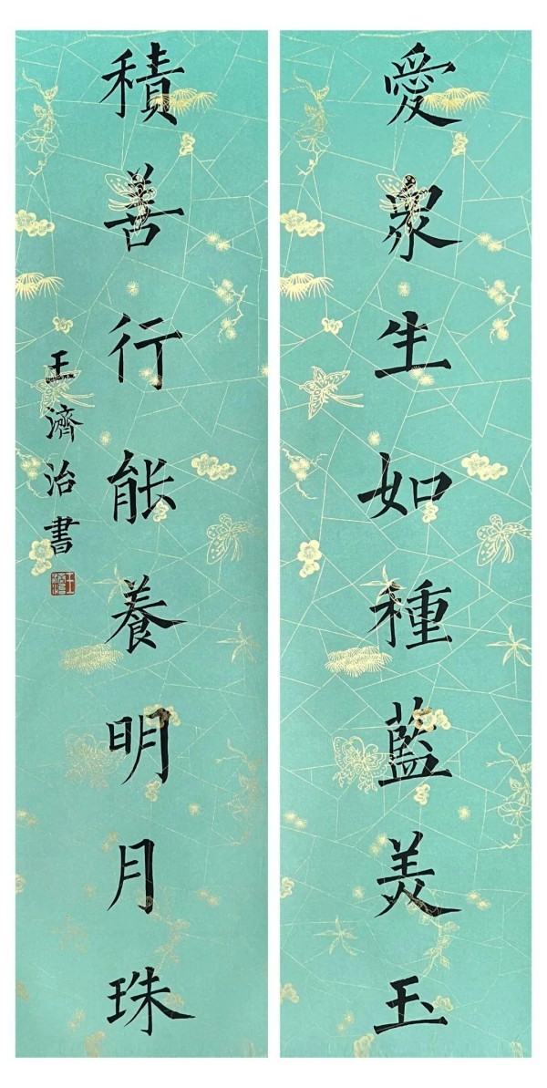 王济治《楷书对联》96x14cmx2