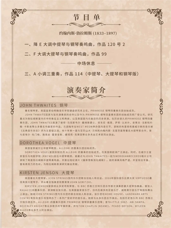 开票啦丨“大美晋江”文化惠民工程——勃拉姆斯专场室内音乐会