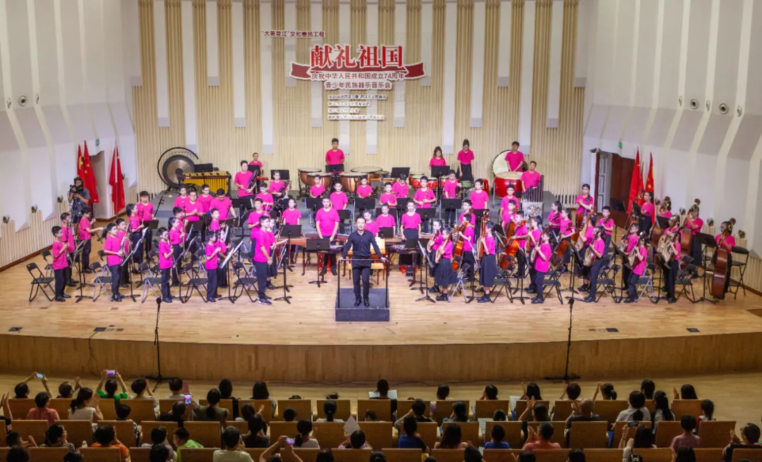 晋江市青少年民族乐团由晋江市文化馆、晋江市民族乐团联合组建,旨在“培养民乐特色人才,普及民乐知识,弘扬民族音乐文化”,提升青少年民族器乐爱好者的艺术素养,推进我市民族音乐艺术事业的发展。乐团参加2023年“献礼祖国”庆祝中华人民共和国成立74周年青少年民族器乐音乐会。