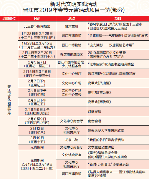 晋江市新时代文明实践活动 近300场文体活动带你闹春节元宵