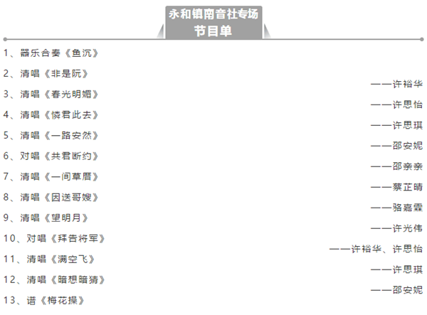 承办单位:晋江市文化馆、晋江市南音协会演出时间:6月13日至27日19:30—21:30