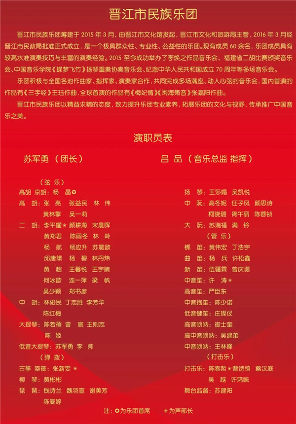 演出:晋江市民族乐团、莆田市音协民族乐团