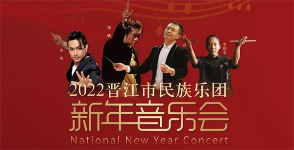 今晚(1月12日)19:30,“大美晋江”文化惠民工程——2022晋江市民族乐团新年音乐会准时演出,请提前进场。