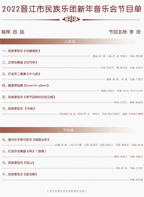 今晚直播 | “大美晋江”文化惠民工程——2022晋江市民族乐团新年音乐会