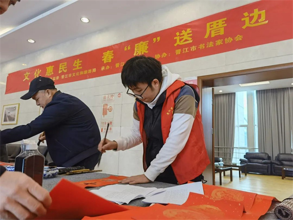 为弘扬优秀传统文化,创新廉政宣传教育形式,丰富群众精神文化生活,营造欢乐喜庆、文明祥和的节日氛围,推进新时代文明实践中心建设,1月19日上午, “文化惠民生,春‘廉’送厝边”新春送春联活动在晋江文化中心二楼音乐厅门厅举行。