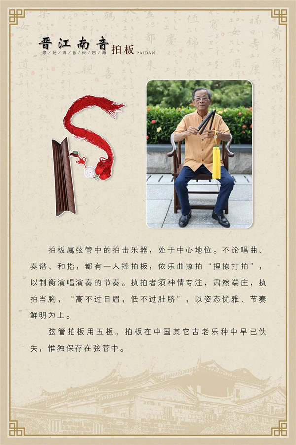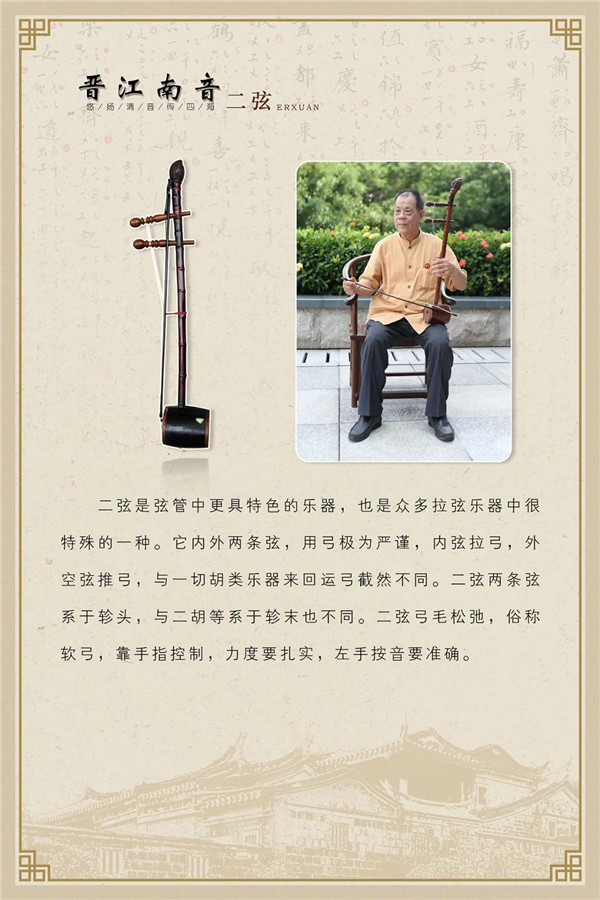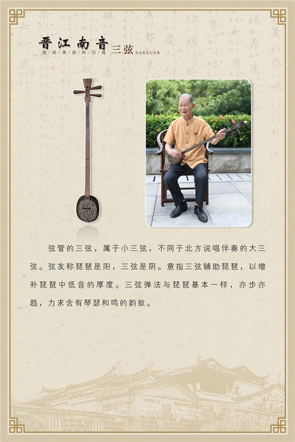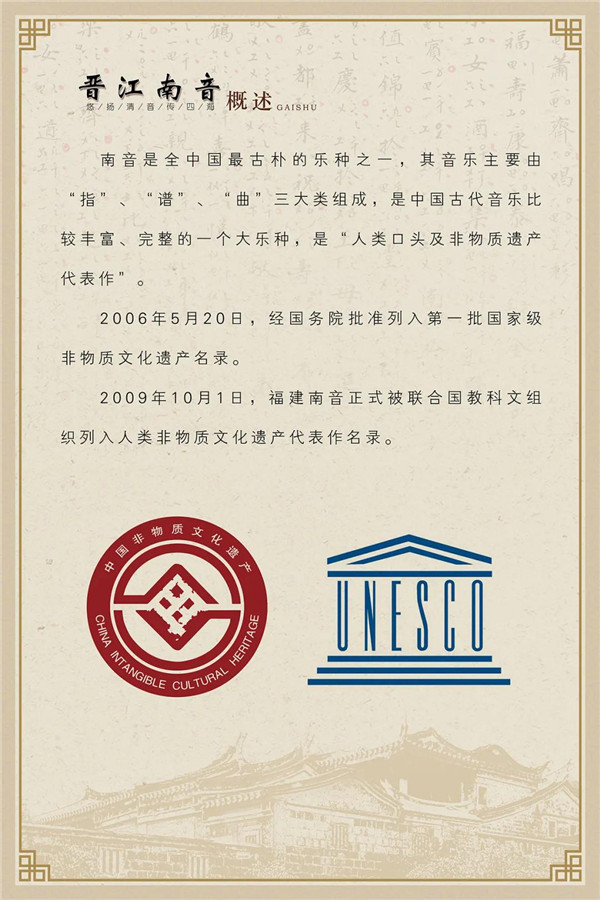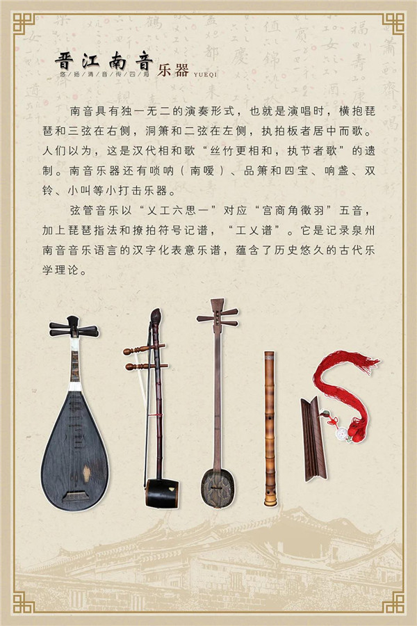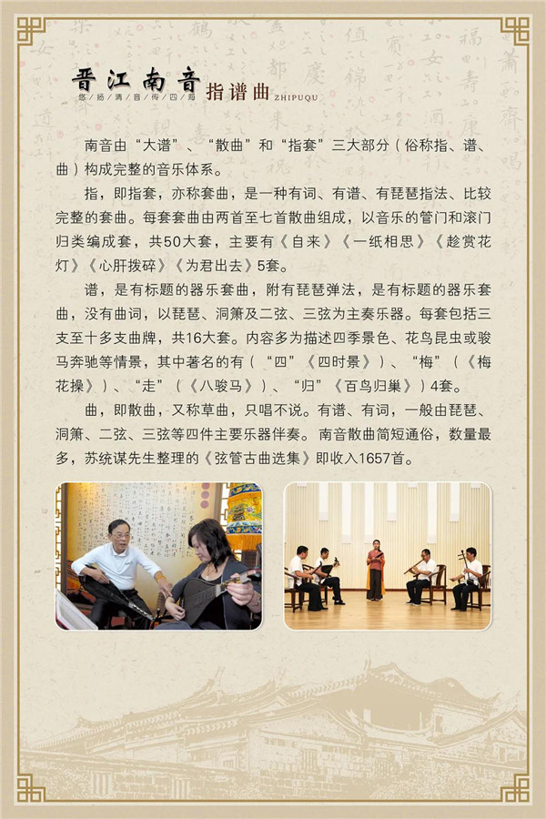 “悠扬清音传四海”主题展览,分概述、传衍、成就三个部分,在晋江文化中心南音厅常态展示。